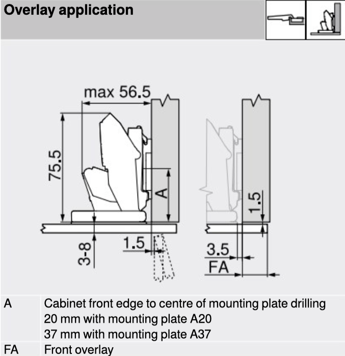 Blum 71B4500C Blumotion 110° Full Overlay Cristallo Glass Hinge