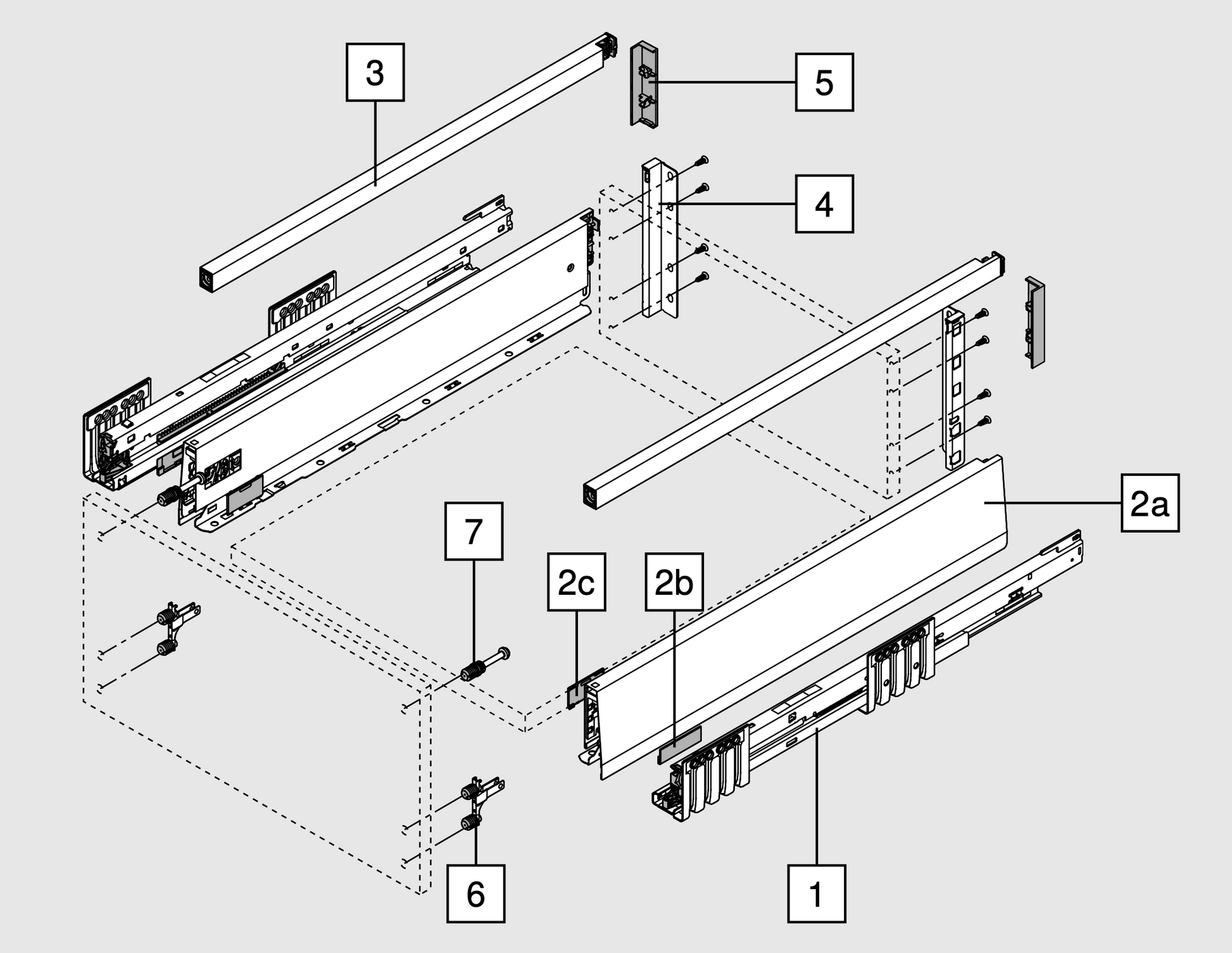 Included: Blumotion runners, sidesx2, gallery rails, fixing brackets or push-to-open tip-on mechanism.