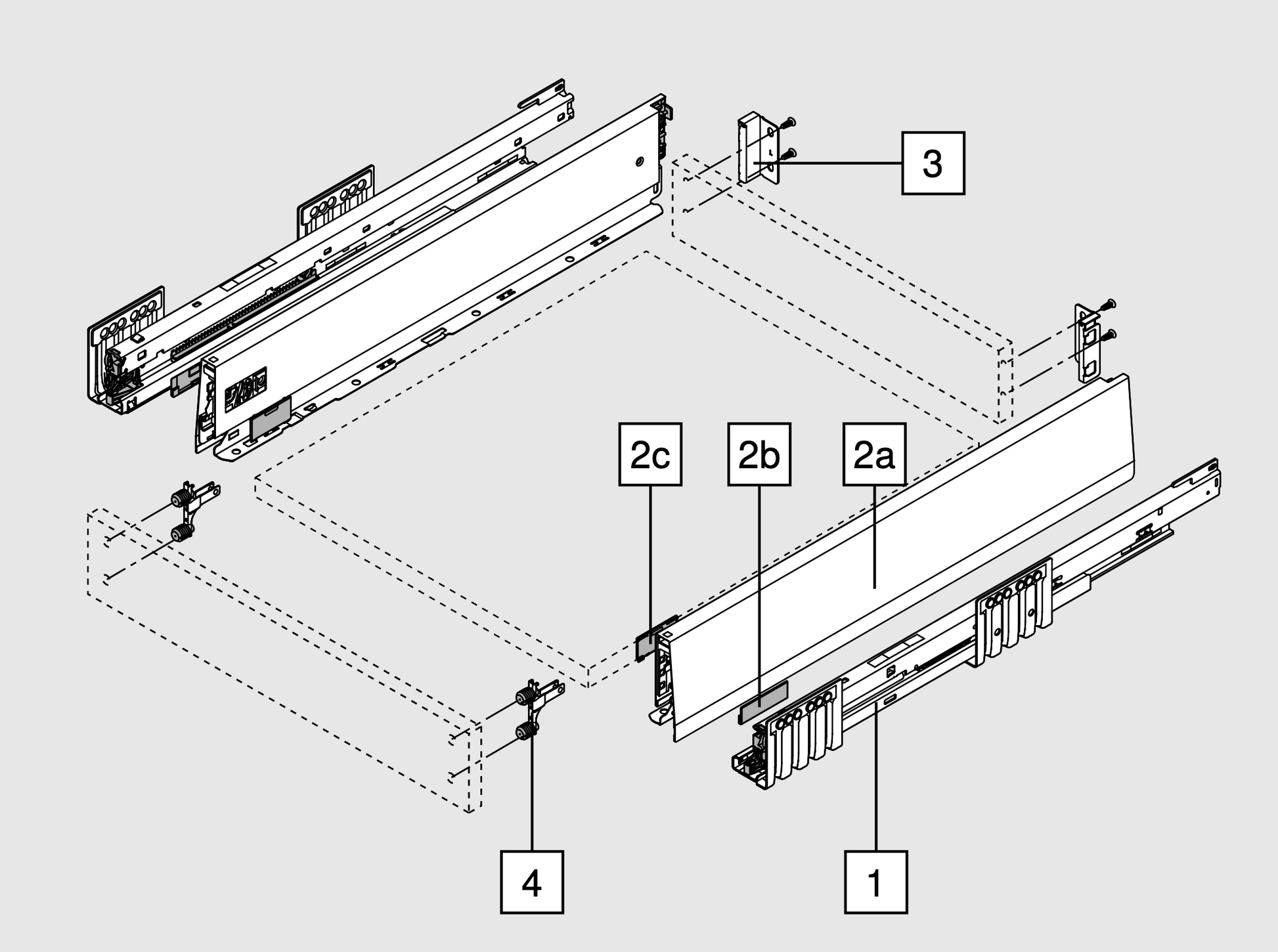 At the heart of the system is the cabinet profile with the same fixing position for all applications. This is the basis for the drawer of your choice. No matter which model you opt for, the front and front fixing bracket are always the same. A true platform that simultaneously reduces complexity and increases variety.