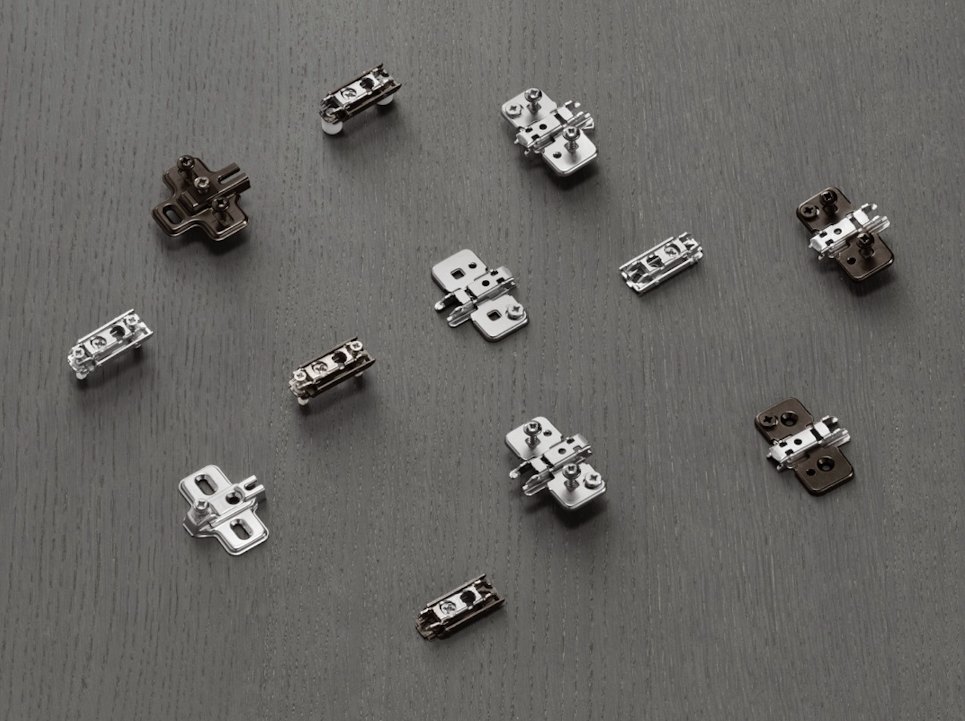 Blum mounting plates offer quick and easy door installation designed with ease of use in mind. The hinge simply clips onto the mounting plate.