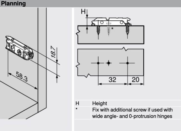 Blum Mounting Plate 175H3100 ClipTop In-Line 0mm Spacing
