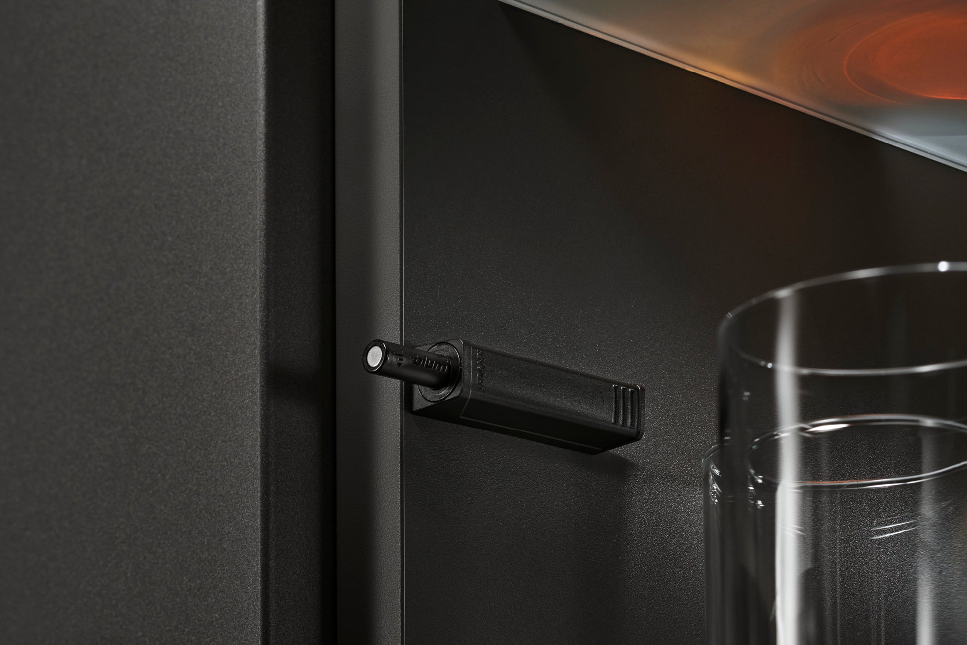 Handle-less fronts open at a single touch with the Tip-On mechanical opening system by Blum. To close, simply press shut.