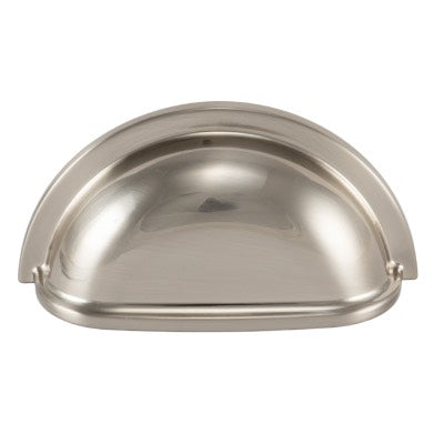 Finished in satin nickel, this is a stylish cup pull handle that will complement your kitchen cabinets and cupboard drawers.