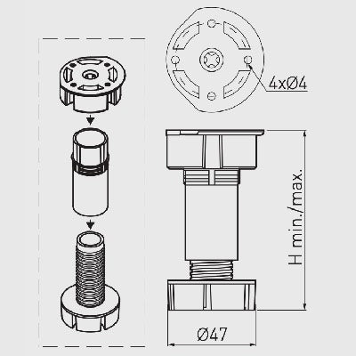 Designed for mounting furniture with plinth, perfect for kitchen or utility.