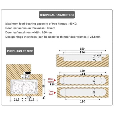 Door Weight: 40kg for 2 hinges & 50kg for 3 hinges