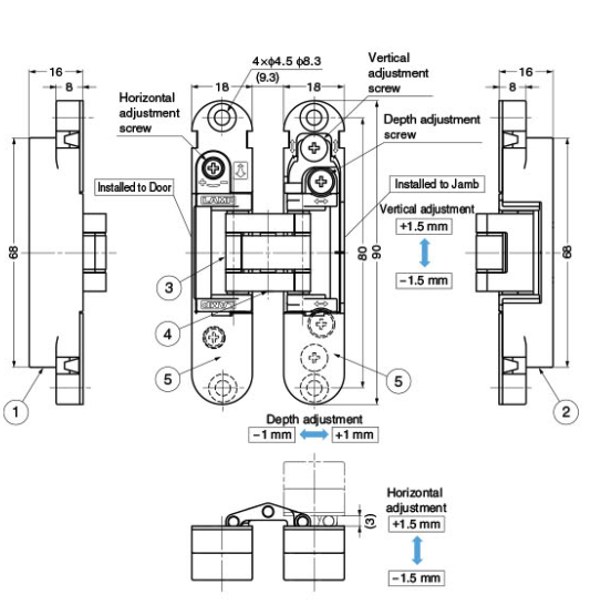 Concealed Adjustable Small Sugatsune HES3D-90 Door Hinge