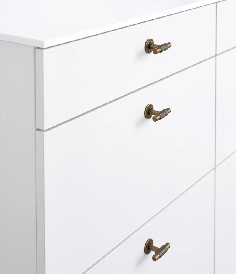 Part of knurled cabinet collection, overall length of 54mm, 39mm projection and 30mm diameter base. Each piece is precision engineered to add texture to an iconic industrial design. Works perfectly with various interior design styles including industrial, modern, transitional, and contemporary