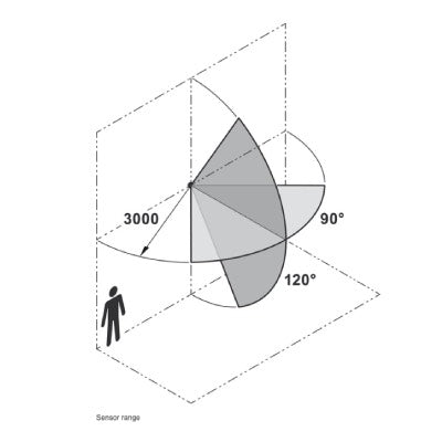 Sensor range: 0 – 3,000 mm