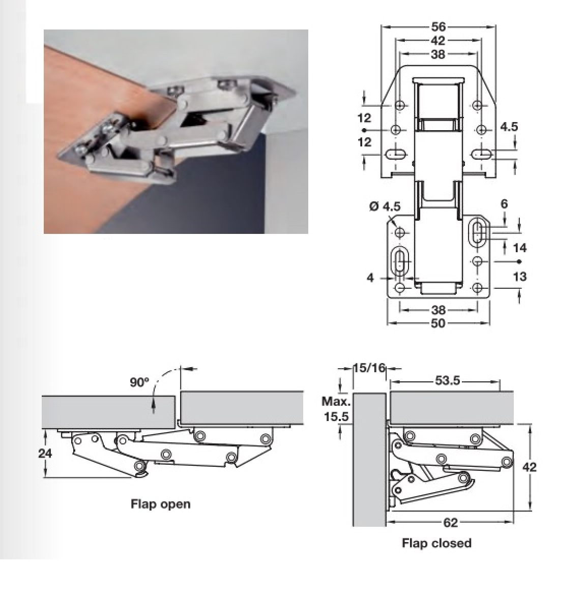 Automatic closing and opening swing up flap hinge up to 2.1kg