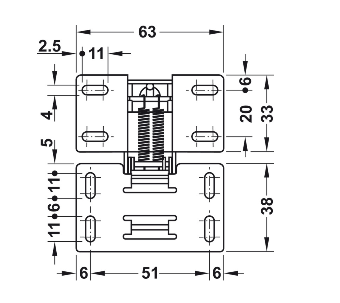 Hinge size: 63mm x 33mm