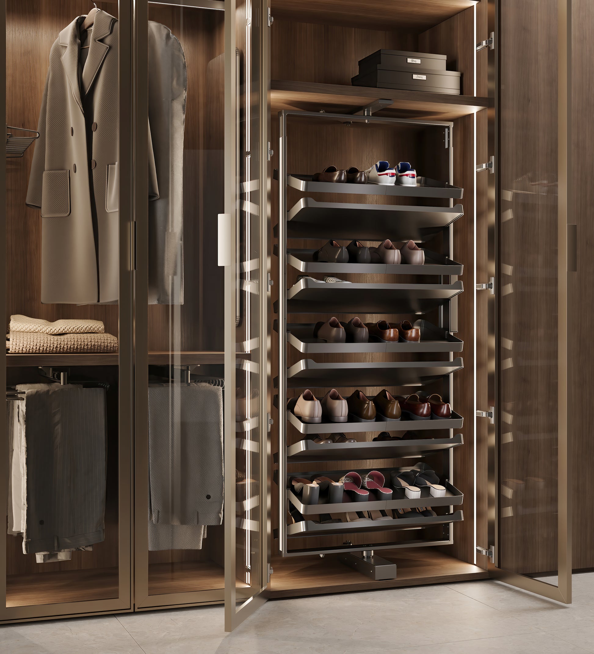 Rotating Shoe Rack Shelves with Frame Mechanism in Titanium