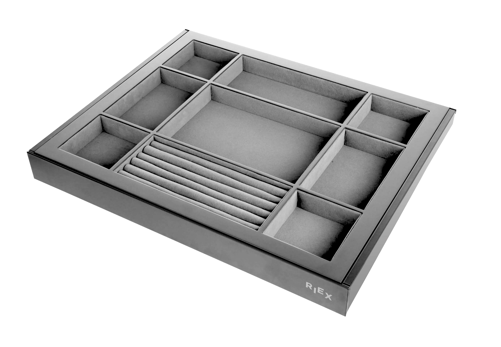 Upgrade your wardrobe storage with this aluminium pull-out frame, designed specifically for organising storage. Its dark grey finish blends seamlessly with contemporary interiors, while the integrated organiser box provides breathable and convenient organisation. This high-quality frame maximises space in cabinets, wardrobes, and storage units. Ideal for kitchens, offices or home organisation. Inside, the insert includes small boxes specifically designed for storing jewellery and trinkets, keeping them neatly organised and easily accessible. Adjustable for about 20mm.