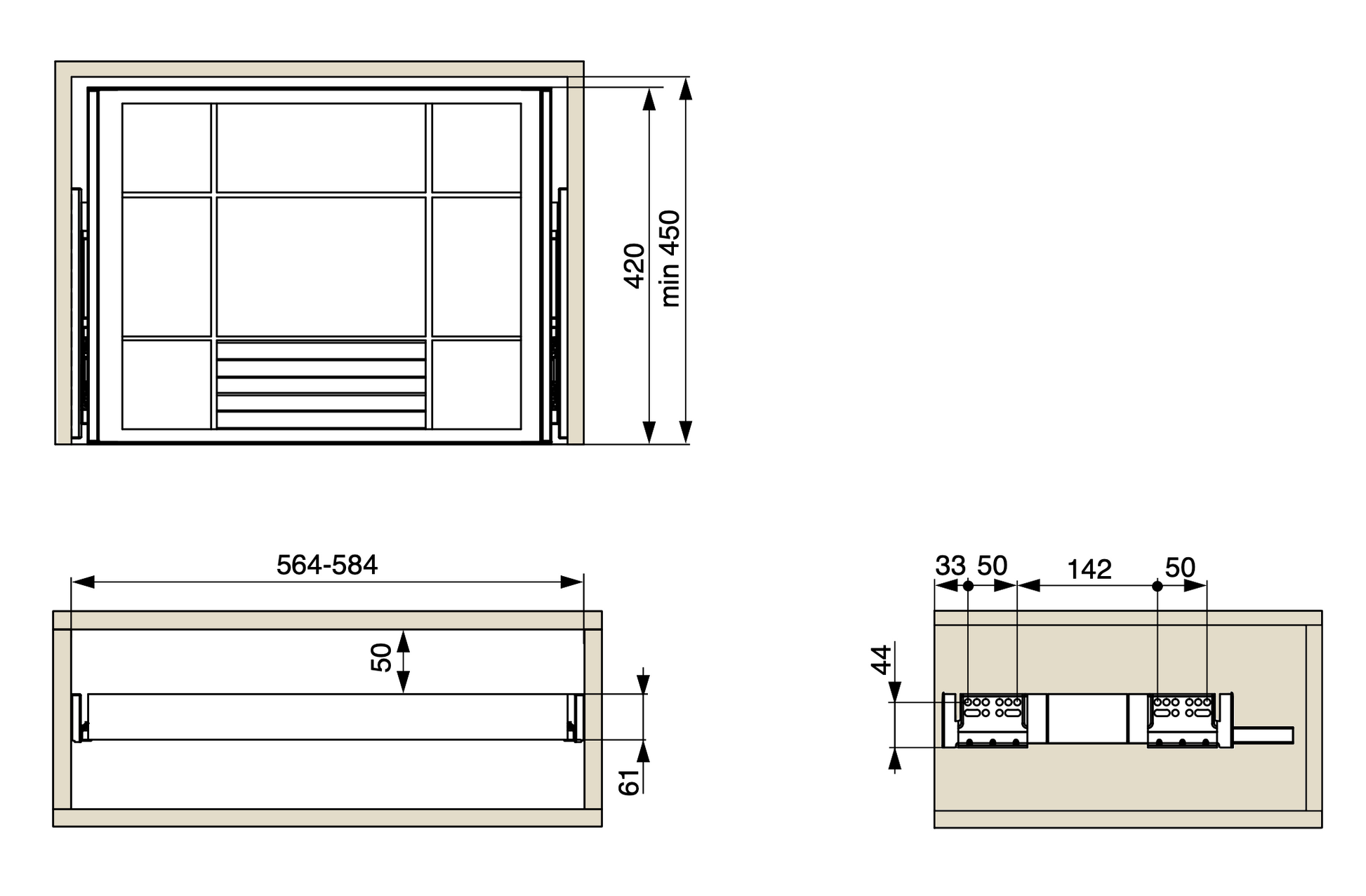 Minimum internal depth: 450mm