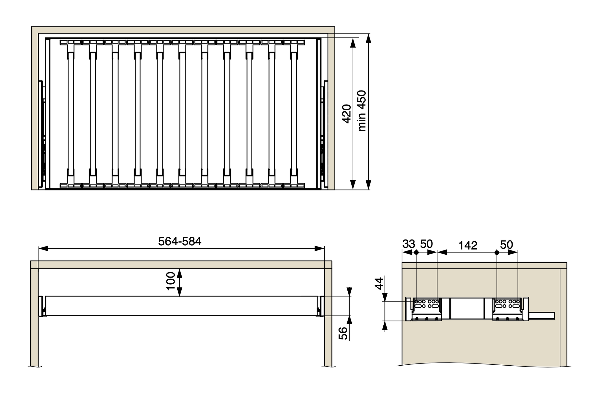 Suitable for: 600, 700, 800 and 900mm cabinets